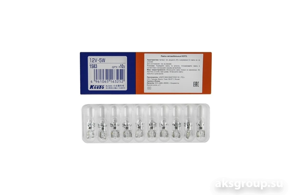 Главная - Каталог - Автосвет - Галогенные лампы, Габариты, Прочее - Лампы накаливания KOITO (Япония) - KOITO 1583