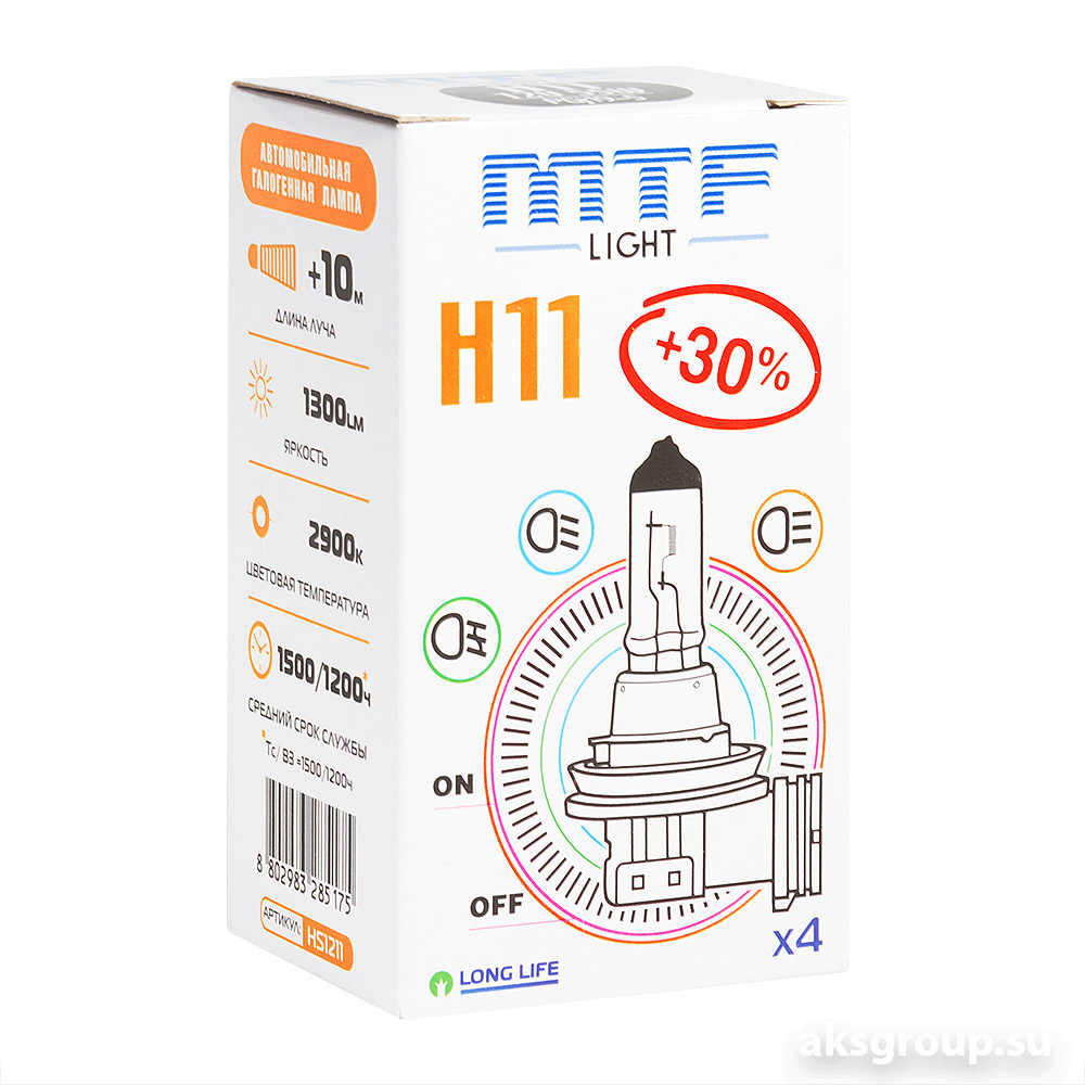 Главная - Каталог - Автосвет - Галогенные лампы, Габариты, Прочее - Лампы накаливания MTF - MTF Standard+30% H11
