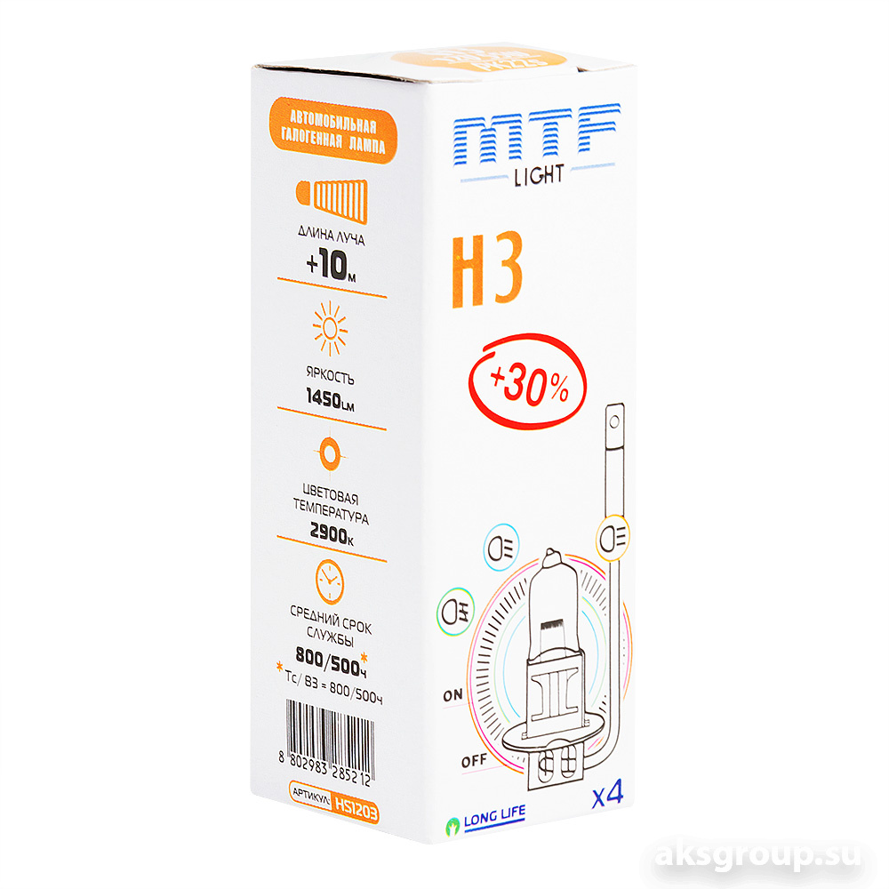 Главная - Каталог - Автосвет - Галогенные лампы, Габариты, Прочее - Лампы накаливания MTF - MTF Standard+30% H3