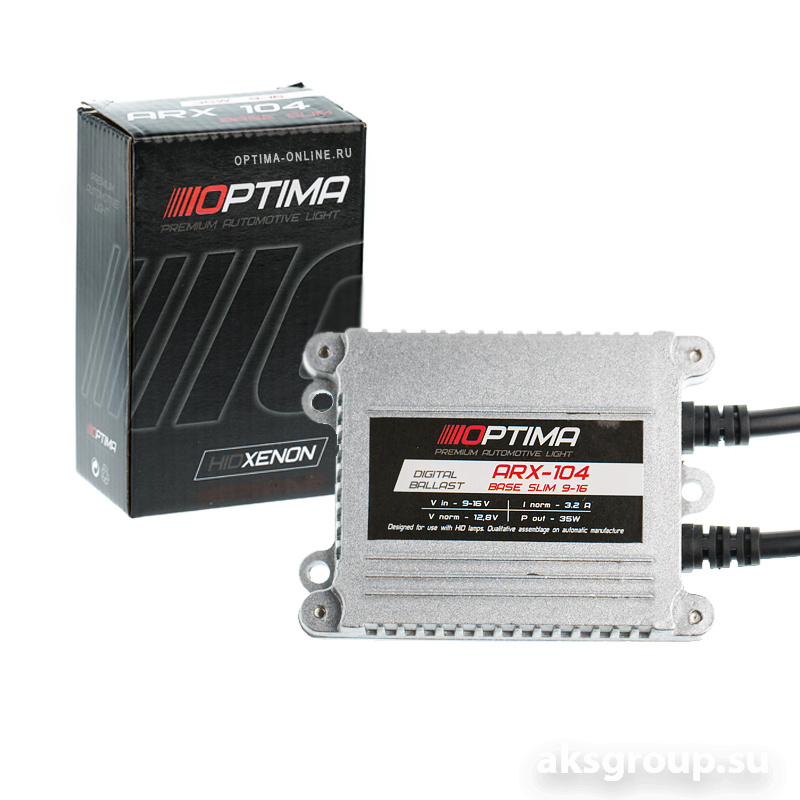 Главная - Каталог - Автосвет - Ксеноновые лампы и блоки, Омыватели фар, Переходники - Ксенон блоки розжига - Блок розжига OPTIMA BASE ARX 104 Slim АС 9-16V