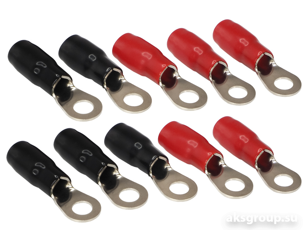 Клемма силовая, кольцевая, 8 мм, 4Ga, 5 красных + 5 черных, Nickel, блистер